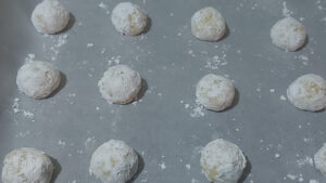 E’ importante ricoprire bene la superficie dei biscotti in questo modo le crepe che si formeranno sui biscotti durante la cottura saranno ben visibili.