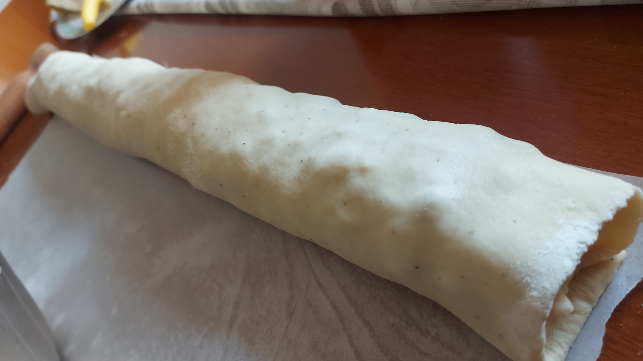 e arrotolate con delicatezza la pasta, il più strettamente possibile.