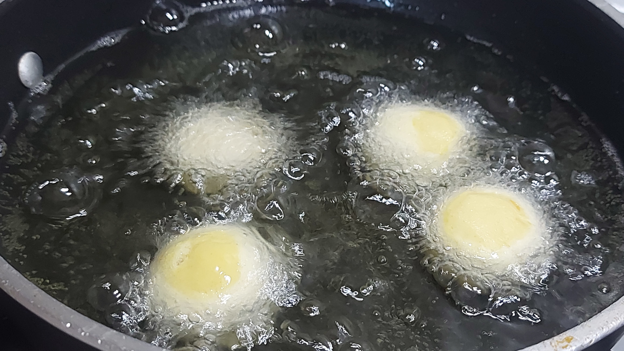 Friggete poche castagnole alla volta girandole frequentemente per cuocerle in maniera uniforme.