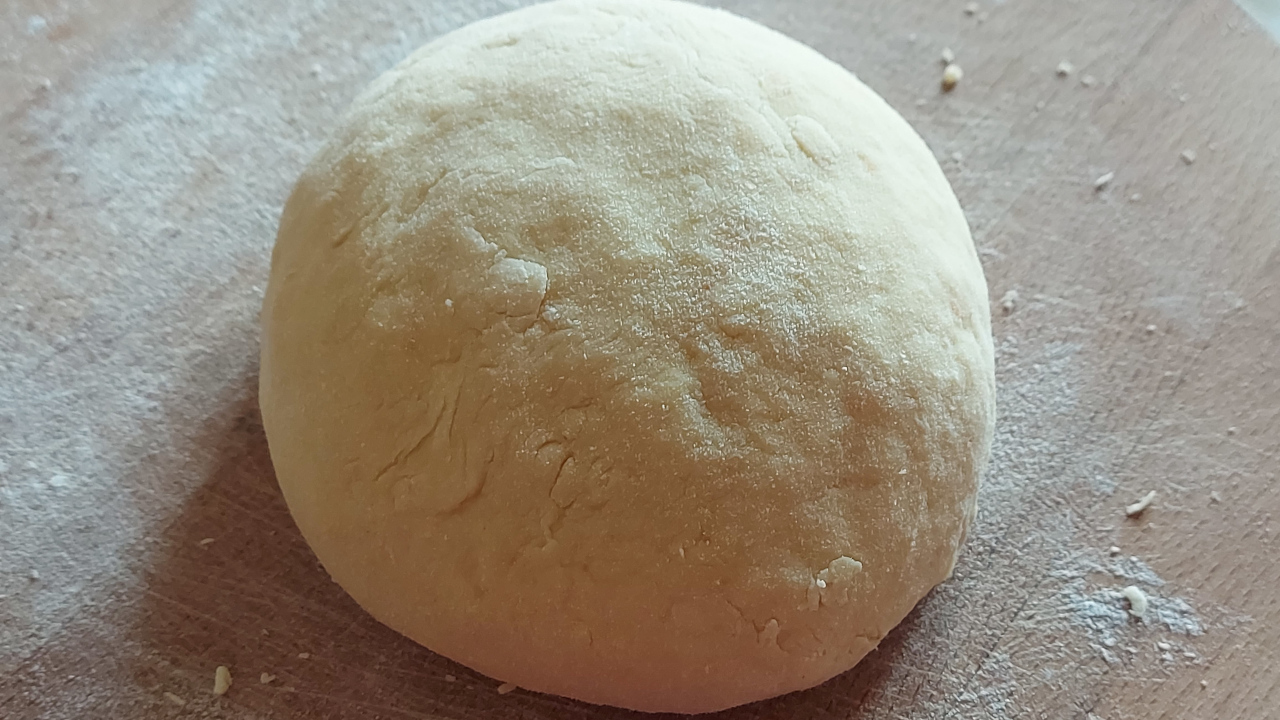Poi continuate a impastare con le mani, su un ripiano infarinato, fino ad ottenere un panetto morbido ma lavorabile.