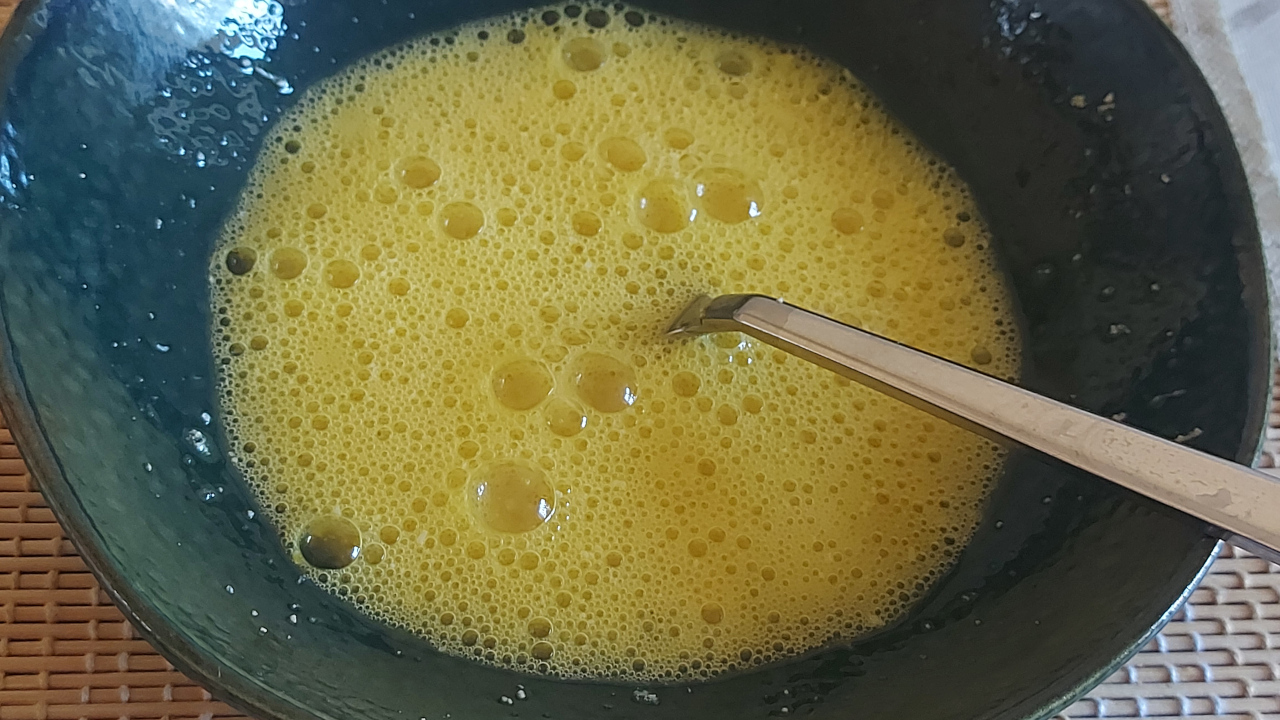 Sbattete le uova con una forchetta o una frusta a mano.