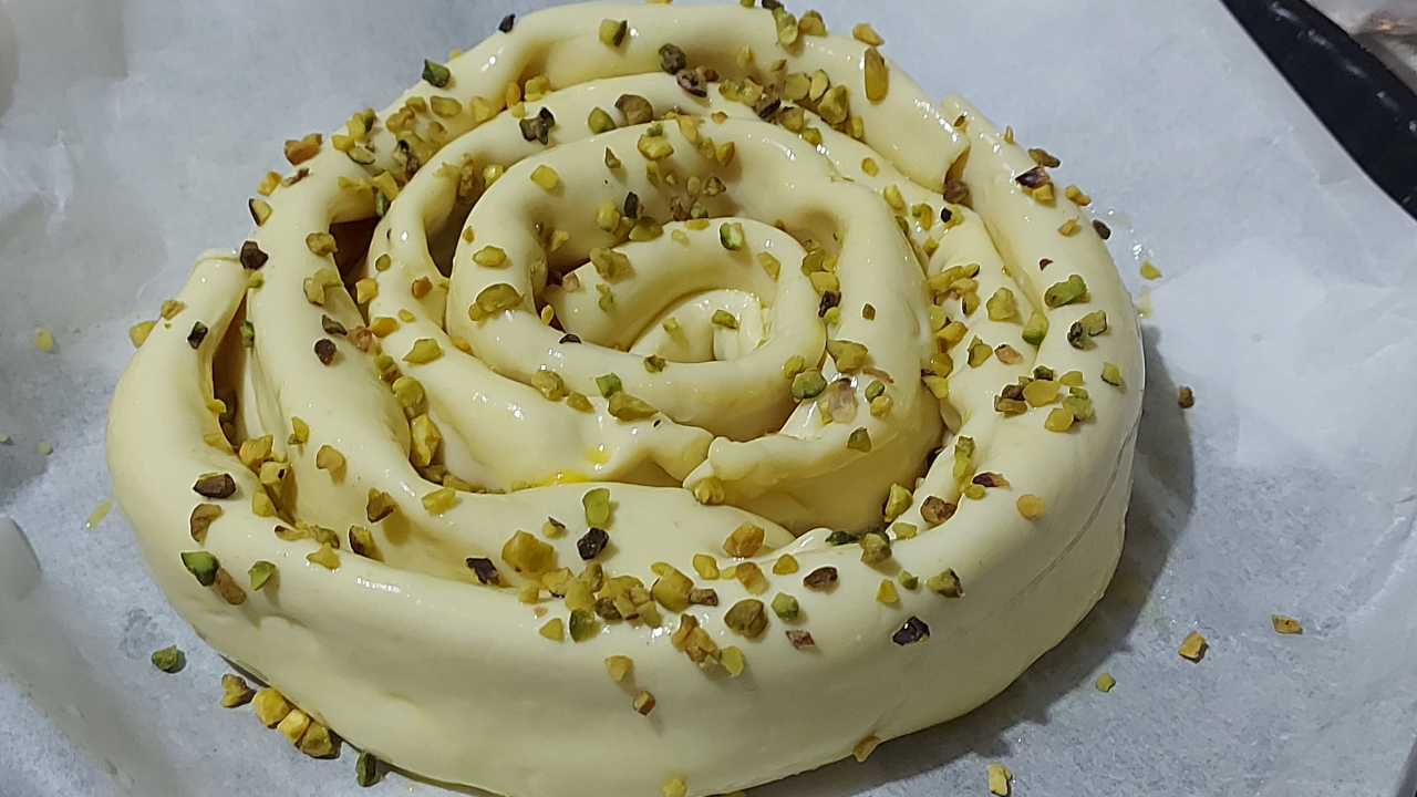 Per un tocco decorativo aggiungete la granella di pistacchio, in alternativa potete usare anche dei semi di sesamo, semi di papavero o altri a piacere.