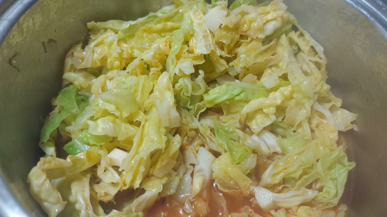 Aggiungete la verza e lasciatela insaporire con le patate.
