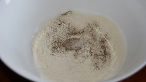 Preparate l’impasto solido. In una ciotola mescolate la farina, il lievito, il parmigiano, il sale e il pepe.