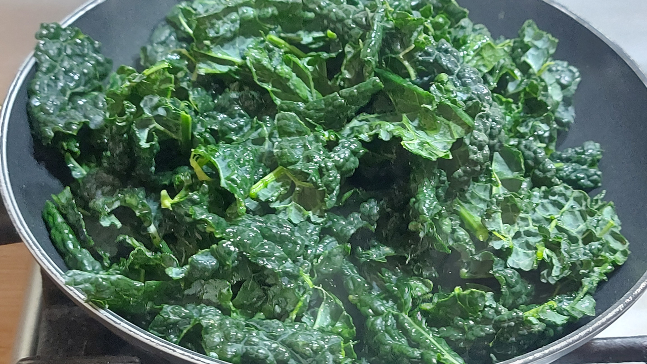 Aggiungete il cavolo nero tagliato, salate e mescolate bene.