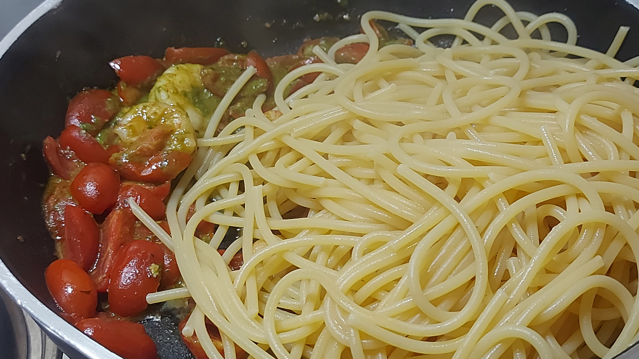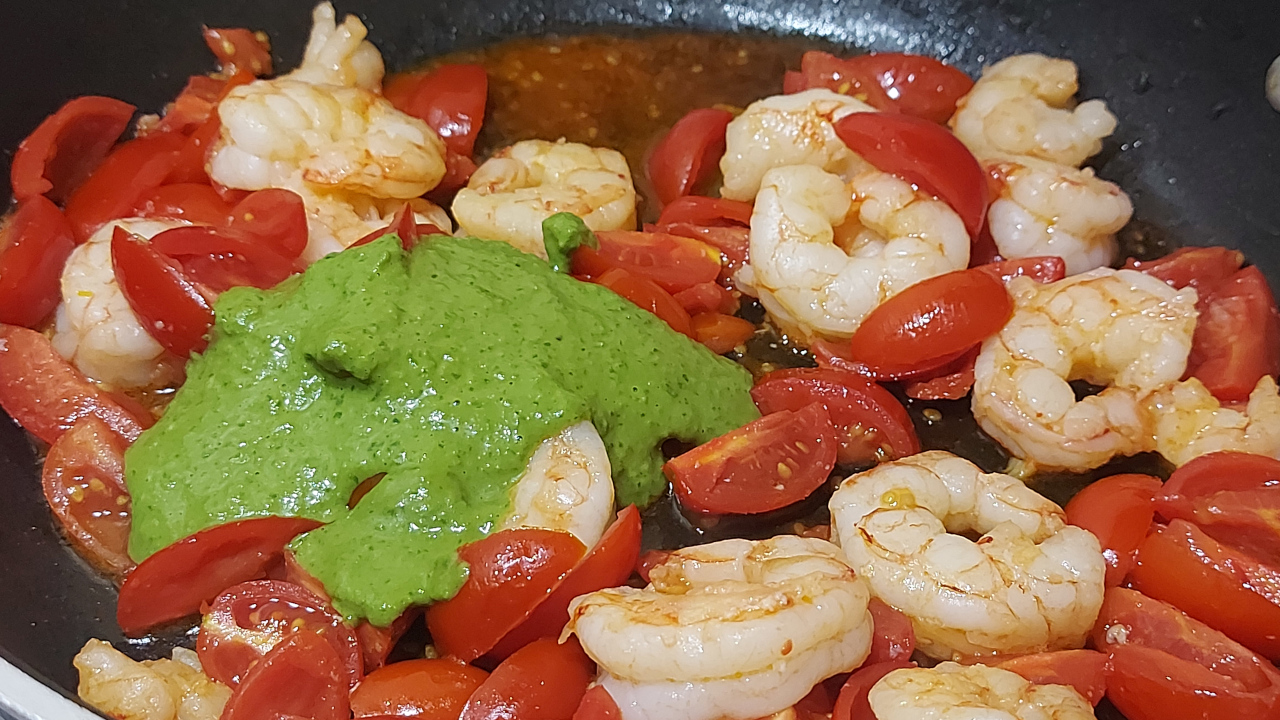 Pasta gamberetti e pesto – Ricetta cremosa con pomodorini