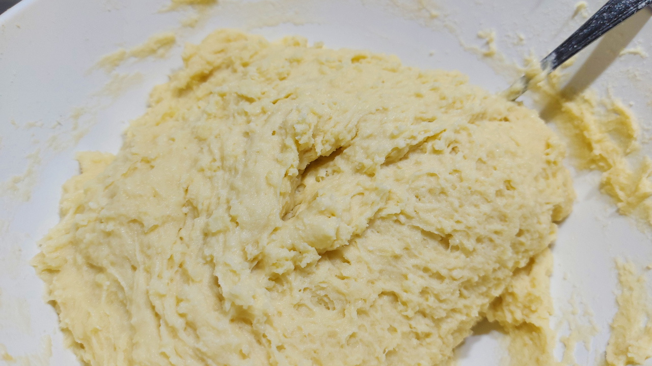 Mescolate per amalgamare gli ingredienti in modo da ottenere un composto omogeneo e non appiccicoso.
