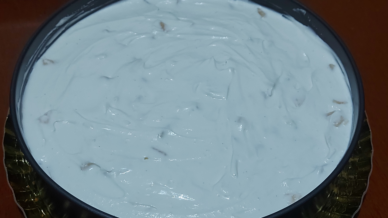 Poi inserite l’anello dello stampo a cerniera per dare forma alla torta e versate sopra tutto il ripieno livellando con una spatola.