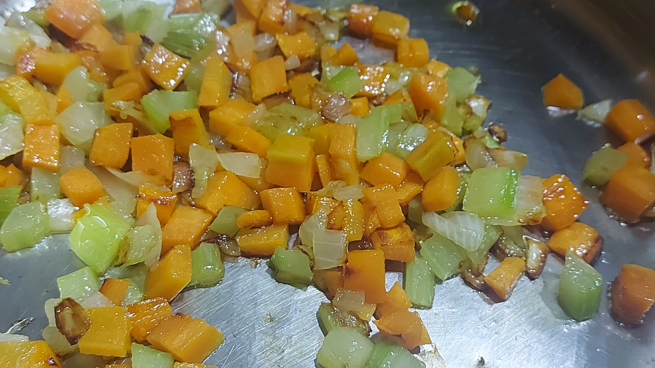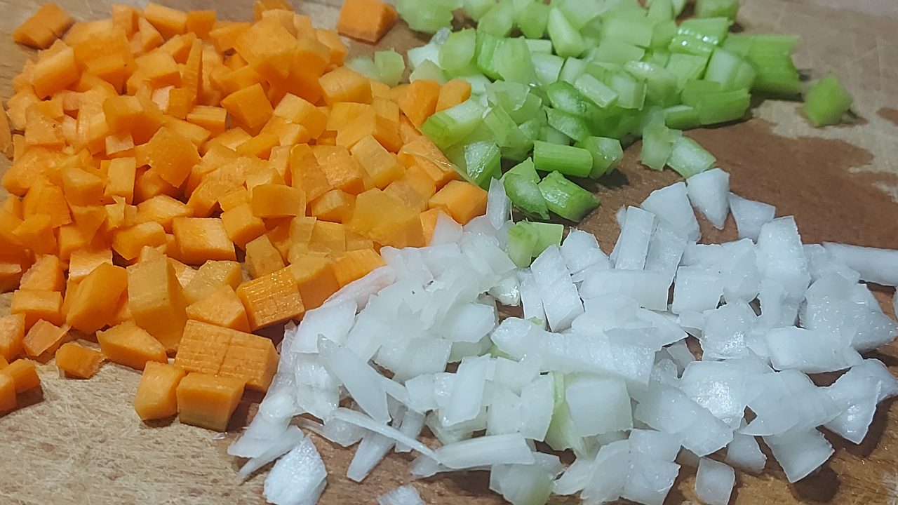 Pertanto pulite la carota, la cipolla e il sedano e tagliateli a pezzetti piccoli.